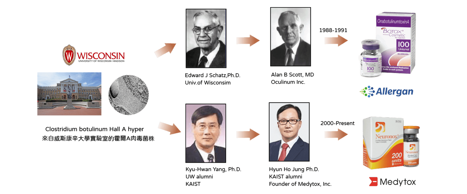 Neuronox肉毒使用的 C. botulinum type A Hall hyper菌株來自美國威斯康辛大學研究室,與Ona-BoNT/A 菌株系出同門,和知名的美國肉毒有同樣的DNA序列,因此來源正統且穩定,加上研究數據豐富,適合做為醫療用途。